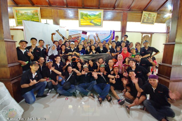 Setelah semua sesi acara di atas selesai dilaksanakan, ajang kopi darat kali ini diakhiri dengan sesi foto bersama di sebuah spot lapangan parkir tidak jauh dari resto tersebut.